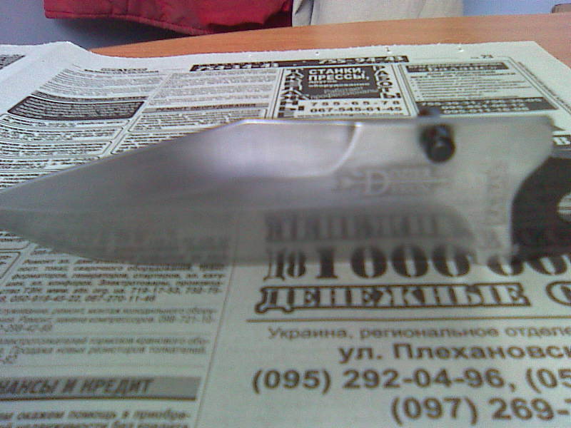 Нет, брать себе не стал, взял на подарок. Стоит у нас дорого, порядка 500 шекелей, на гривны это около килогривны. Племяннику в армию на днюху. Оттого то и знаю про удобство и точку - консервы они там им армейские вскрывали, на всю шоблу, с песиками, лезвие изтупили, но после переточки на более тупой угол - и это издевательство терпит. Какая сталь - http://www.steelnumber.com/en/steel_com ... name_id=85. Что это значит в реале - пожалуй немногим лучше чем 440, но не настолько, чтоб я это покупал себе - я ж не охотник. У меня к ножу повседневного ношения требования другие.
