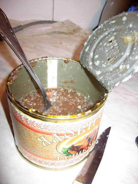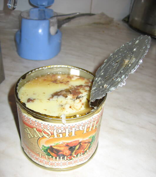 вес непонятной смеси в консервной банке: 500 грамм (вместе с банкой)