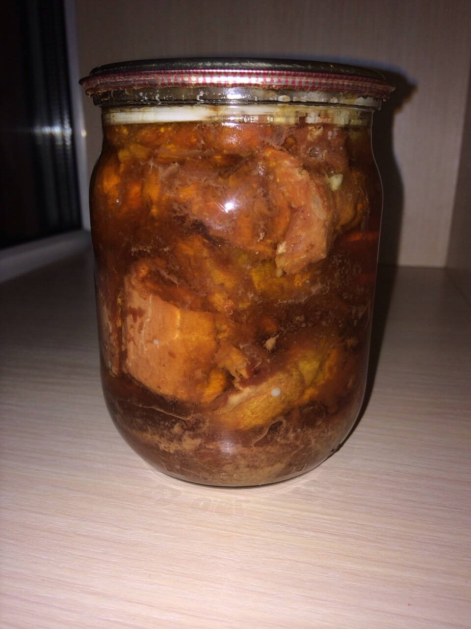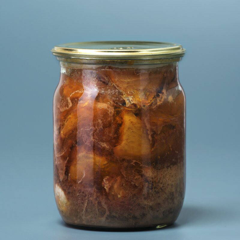 Тушеночка произведена в домашних условиях способом атоклавирования.