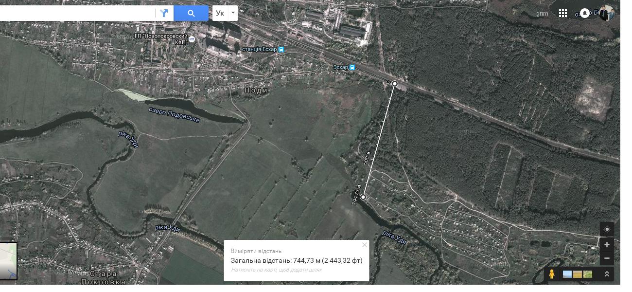 Да спасибо за разъяснения, может згодится. Измерения естественно по Гуглу для " пл.Дачи - Уды (мост) - 1070 м " - совпадают (чего бы им не совпадать), а ст. Эсхар - Уды (залив) я для корректности брал от непосредственно от платформы, наверное и набежало.