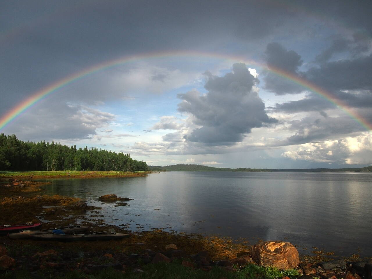 Шли по озерам 6 дней. В протоках меж ними встречались пороги 1 - 2-ой категории, в них дырявились шкуры наших байдарок, мы клеились, плыли пока не впали в Чупскую Губу.