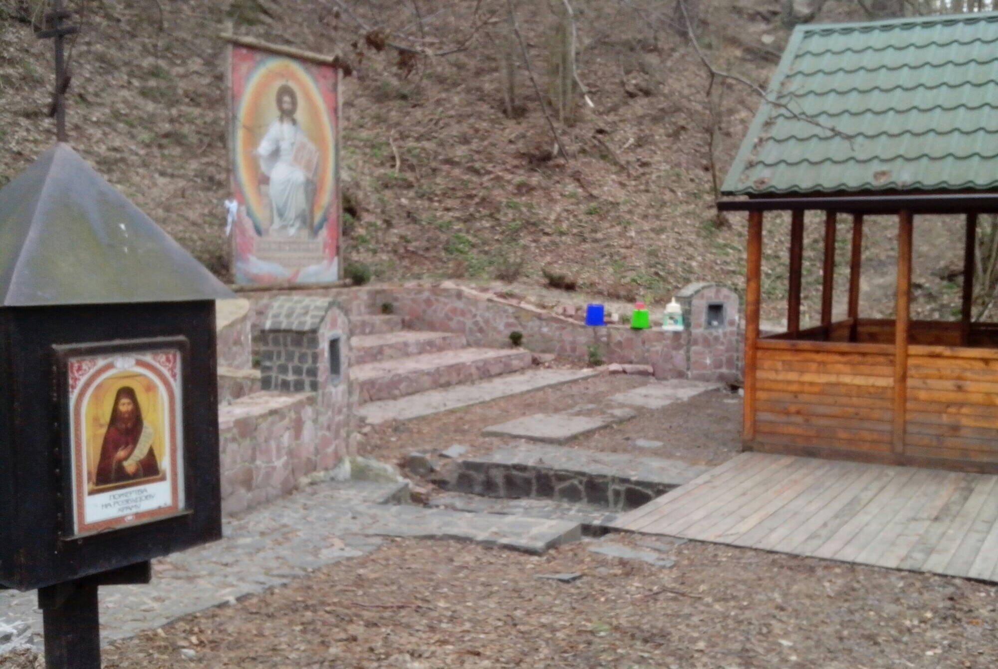 Есть родник и купальня.