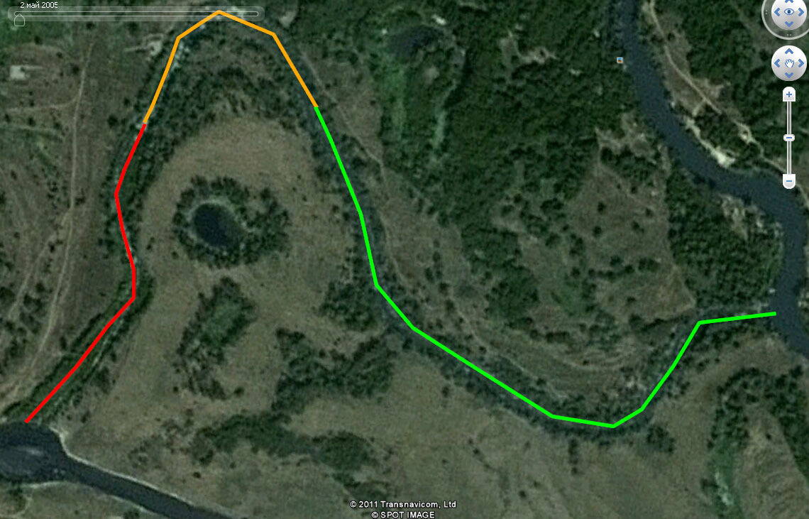 Через пару дней будем с компанией сплавляться по Донцу (осн. маршрут отмеч. зеленым цветом). Интересует вопрос, кто в курсе можно ли пройти по старому руслу (отмечен оранжевым) возле Синичино (49° 6'37.85"С, 37°24'16.16"В)?