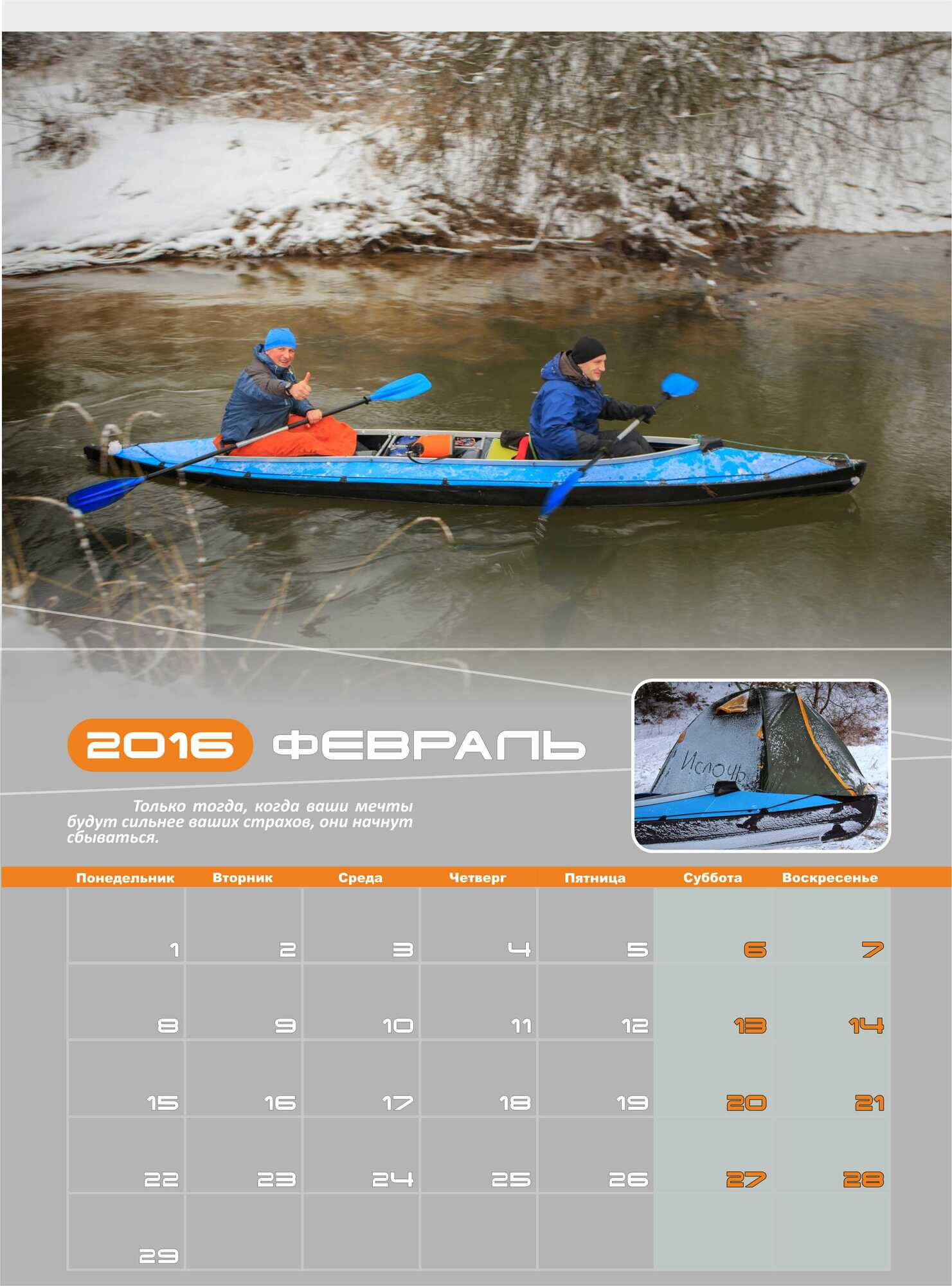 Да, к слову о зимних сплавах - мы сделали календарь на 2016 г. Там тоже есть симпатичные зимние фото