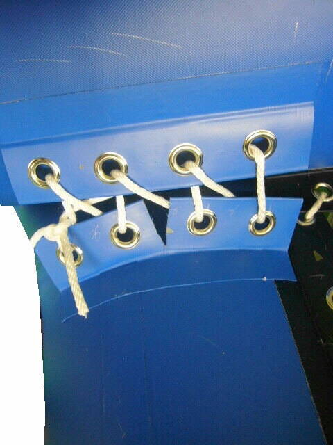 На фото Сатурна, с их сайта, узле крепления поперечной балки и баллона. Я всячески пытаюсь избегать подобных случаев. Планка с люверсами на поперечном баллоне работает на чистый отрыв и площадь контакта весьма ограничена. Качественному ремонту повреждение в таком месте не поддается. И главное не это. Что будет с катамараном при разрыве в этом месте?