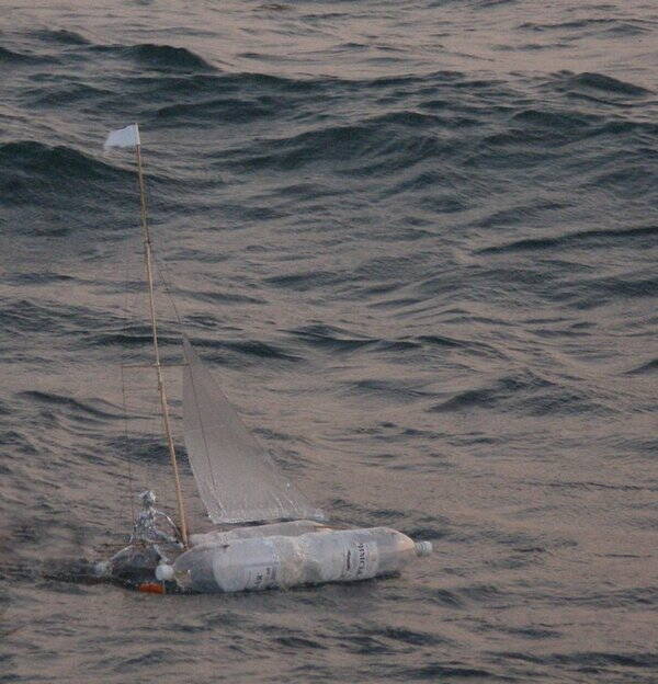 Почему же только папуасы? Посмотрите на отсутствие шверта и руля на (2:50) и при том ход на ~70° к ветру на (3:20)
