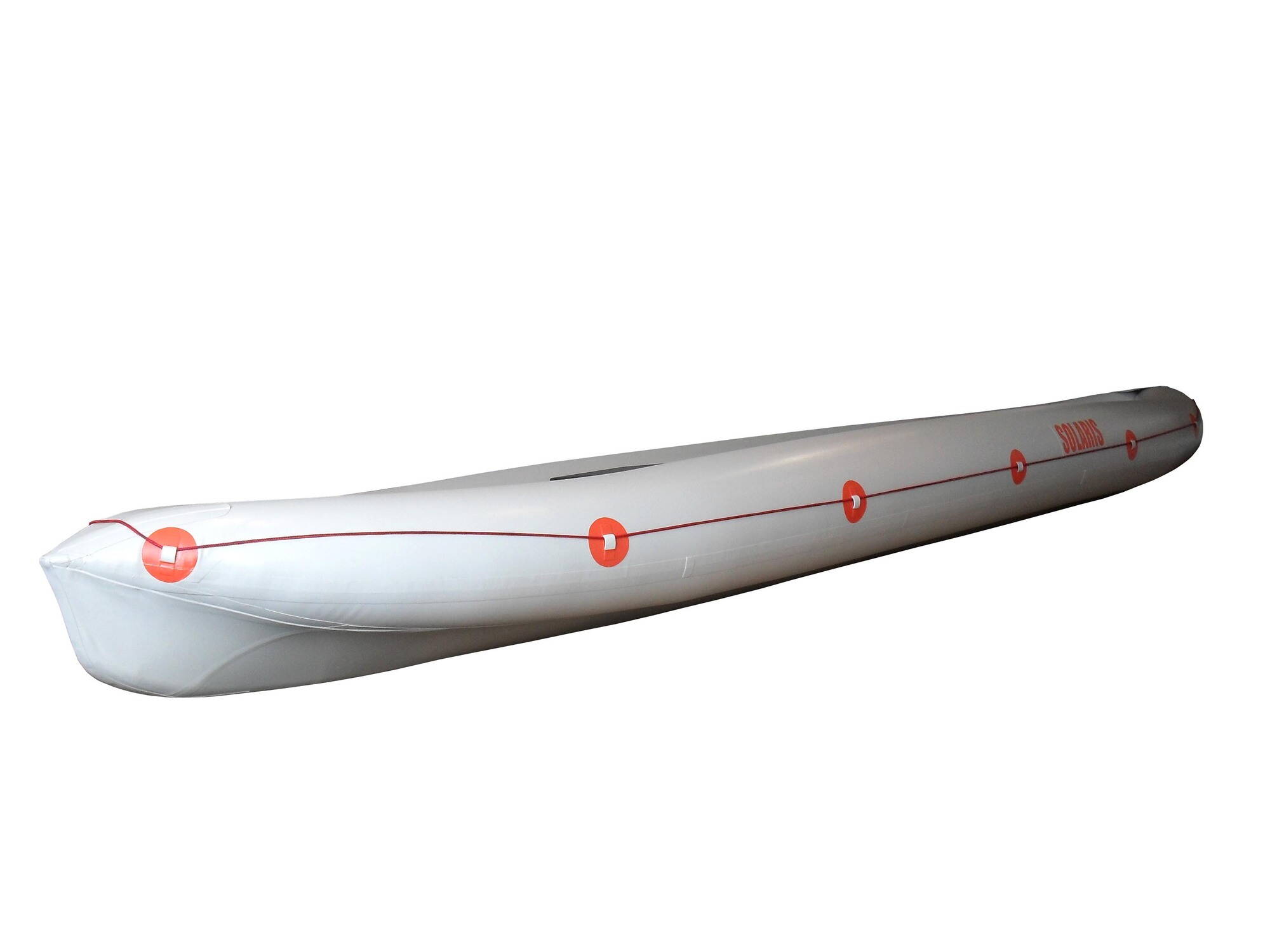 Байдарка надувная Solaris 42VS - это упрощенный вариант 42А, которые имеют надувной настил. В данной комплектации надувной настил заменен надувным кильсоном и сланями. Тип корпуса: килевой с явно выраженными штевнями. Килевая форма образуется за счет натяжки днища надувным килем, вставленным под слани внутри кокпита.