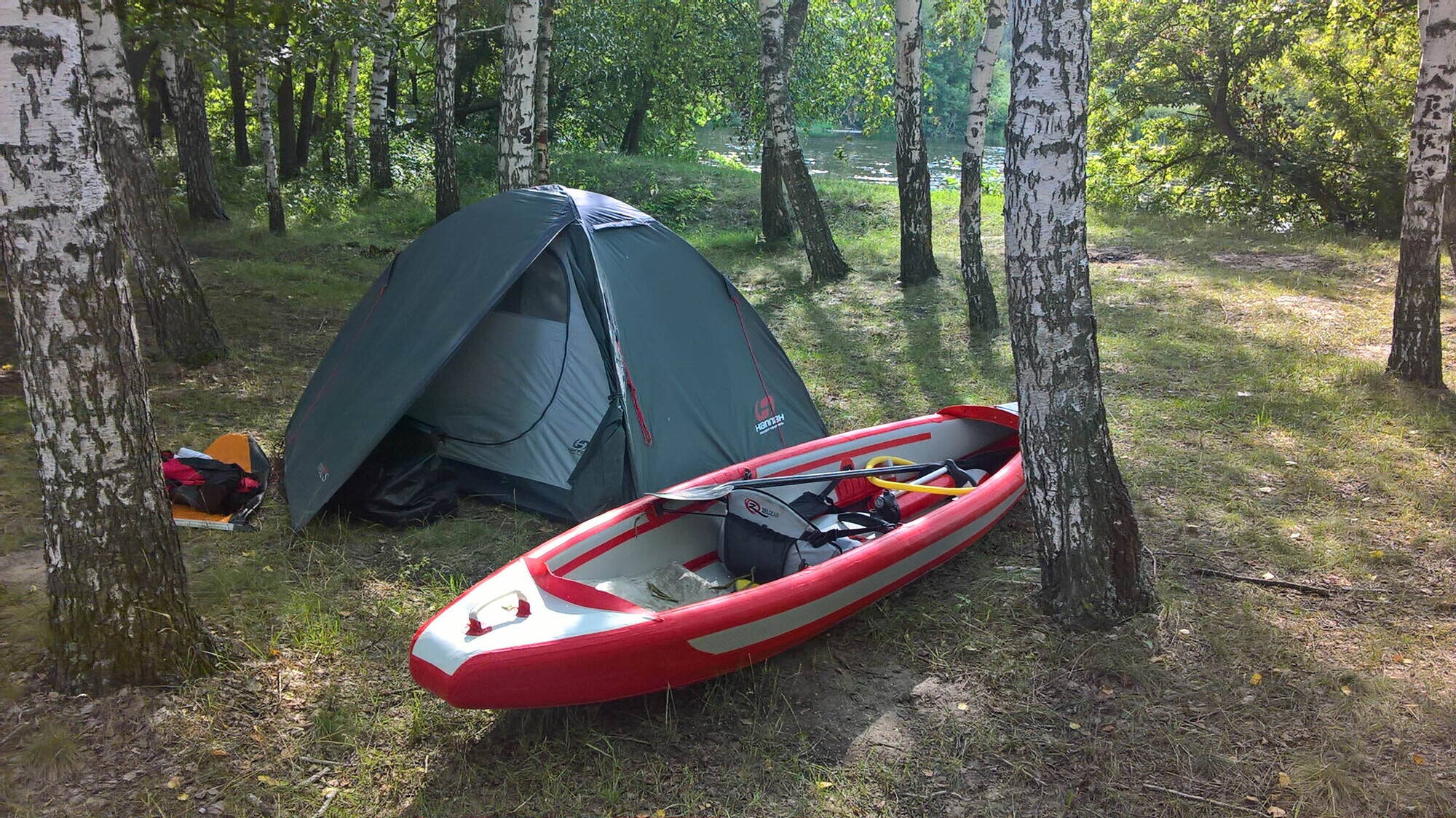 Это фото с р. Псел )) Действительно ходкая, очень быстрая и спортивная! Вес этой байдарки длиной 4 м в комплекте с пером, носовым штевнем, насосом и ремнабором - почти 21 кг