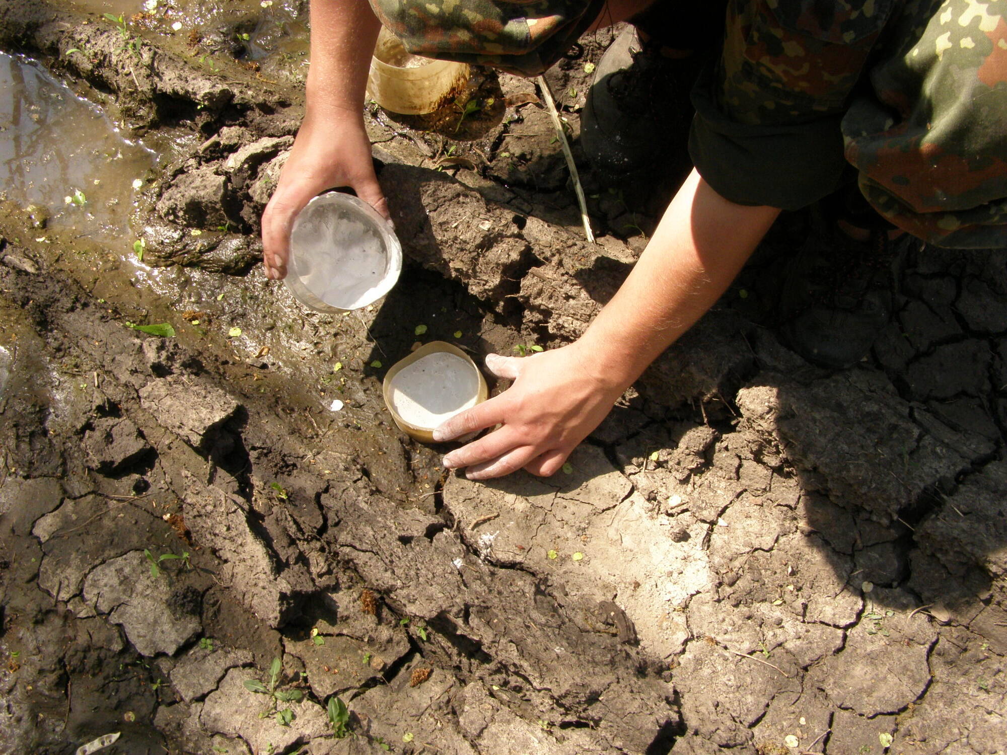След барсука и изготовление слепка следа из гипса.