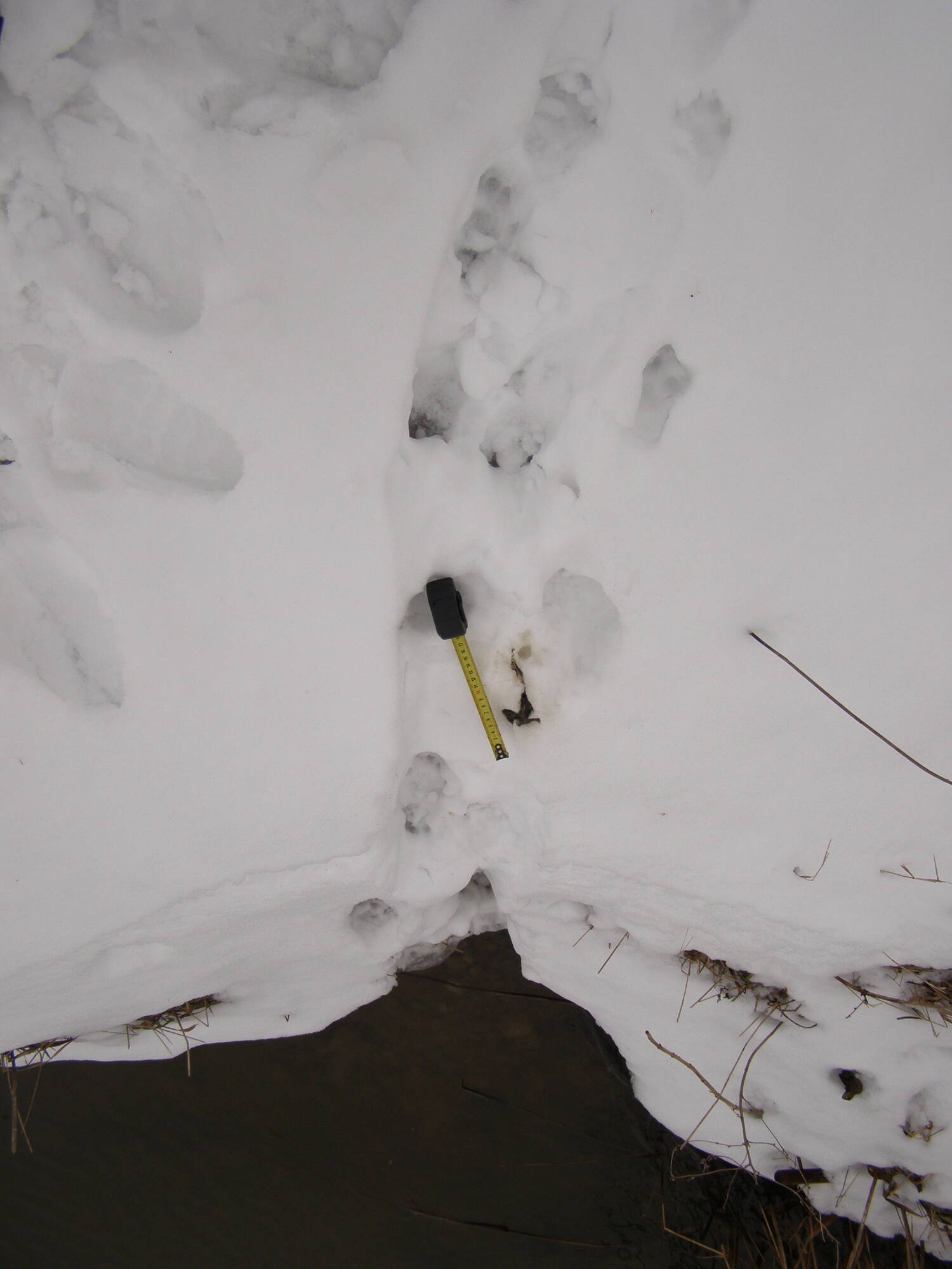 Но это может быть и нора выдры. Параметры нор у этих зверей подобные. Выдры оставляют укатанные траншейки - они устраивают слалом на снегу.