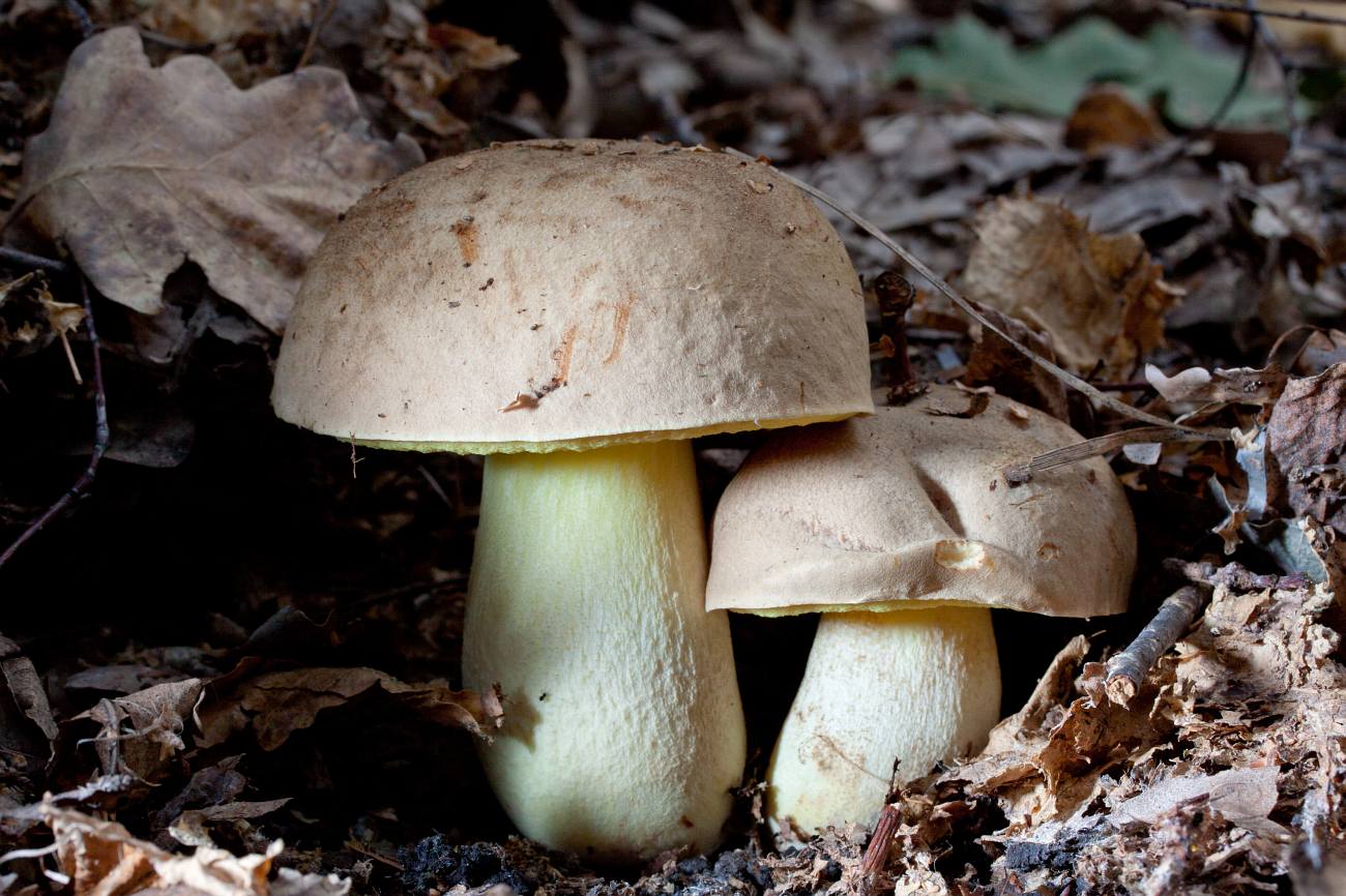 Как по мне, то слева у Вас типичный боровик глубокоукореняющийся - очень красивый, часто очень похожий на вкусный полубелый гриб, но при этом - горький, и потому - несъедобный.