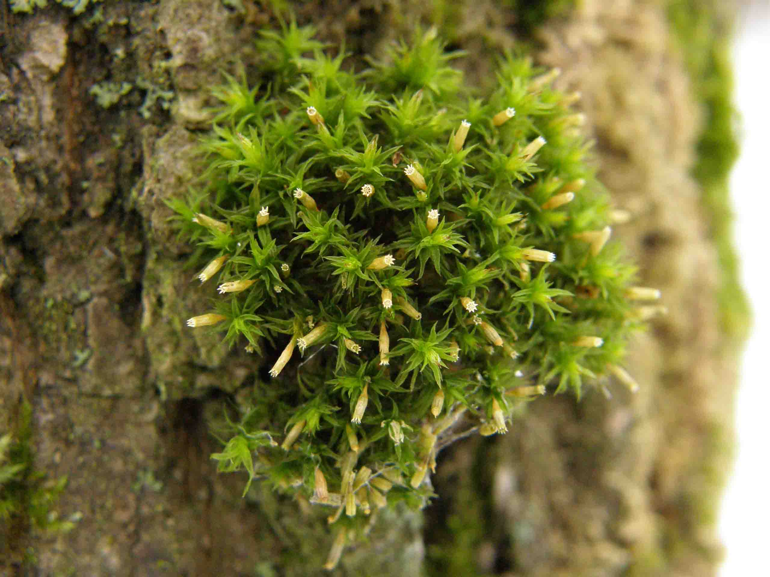 Комментарий к файлу: Orthotrichum speciosum Nees - ортотріхум прекрасний (Білгородська обл., заповідник "Бєлогорьє", січень 2009). Приклад верхоплідного моху, який галузиться при основі, утворюючи подушку з багатьох "головних" стебел.