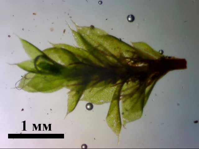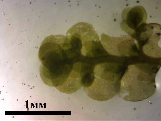 Комментарий к файлу: Частина стебла B. moravicum у вологому стані (фото при наскрізному освітленні). Коричневі нитки, що стирчать із пазух листків - органи вегетативного розмноження. За ними цей вид дуже легко визначити.