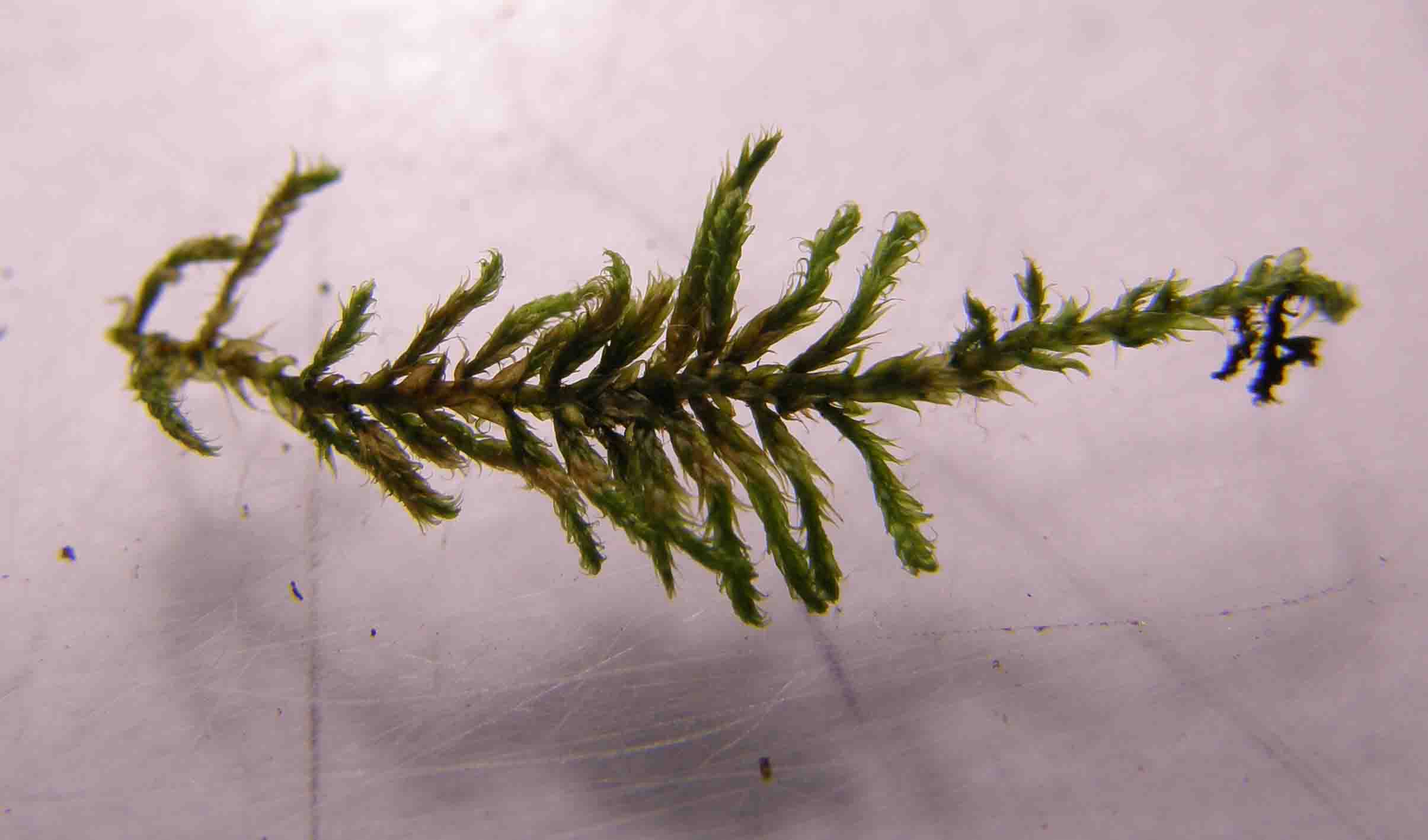 Комментарий к файлу: Hypnum pallescens (Hedw.) P. Beauv. - гіпнум блідуватий. Фрагмент стебла з гілками (загальна довжина близько 3 см.). Добре видно характерне для бокоплідного моху майже пірчасте галуження. Вид є надзвичайно поширеним в дібровах, де утворює обростання нижньої частини стовбурів.