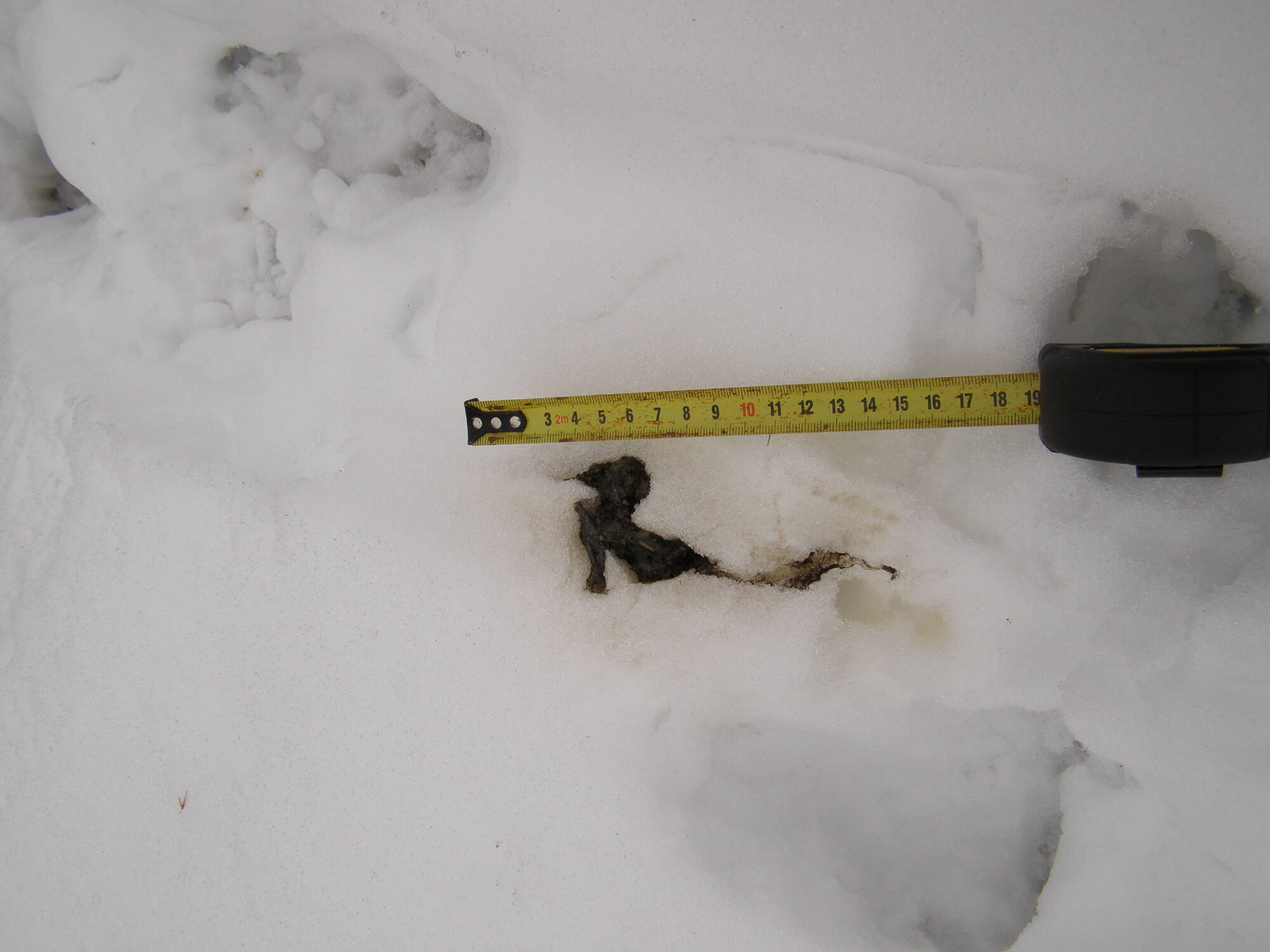 Первый палец часто не отпечатывается, особенно у передних лап, зато даже на не очень глубоком снегу обычно остается борозда от хвоста.