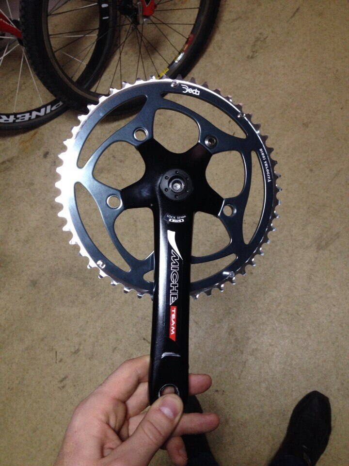 Обменяю сабж на какую-нибудь шоссе систему. Имеется несколько косметических коцок, а так система практически новая, квадрат джис, короткие бонки. Звезда Deda 50T (тонкая)