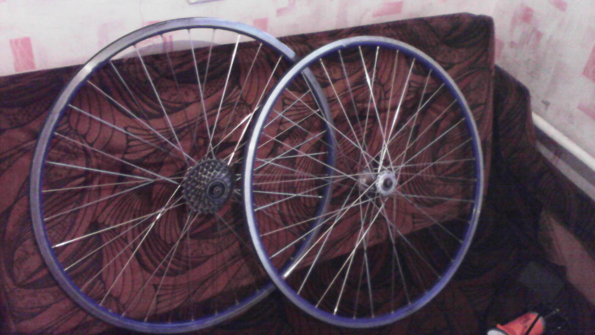 продам хорошие колёса. обода без названия, втулки перед хвз зад кампаньёла под трищётку. перед в хорошем состоянии, а вот зад восьмёрка, в идеале конечно переспицевать, но выровнять тож можна. предлогайте цену, моя 300,