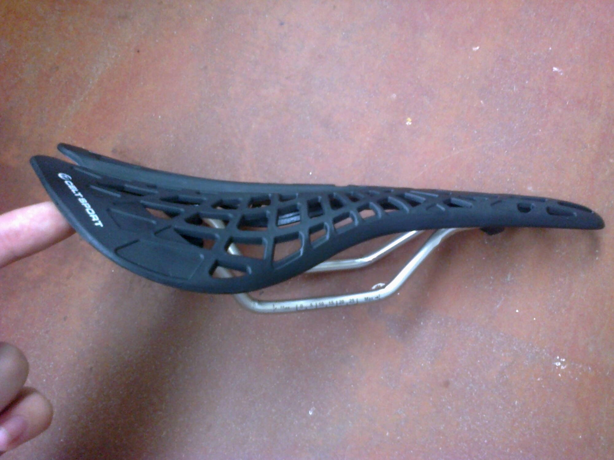 лёгкое около 190 грамм, размеры 280х130 мм, рейлы стальные, пластик мягкий седло прогибается