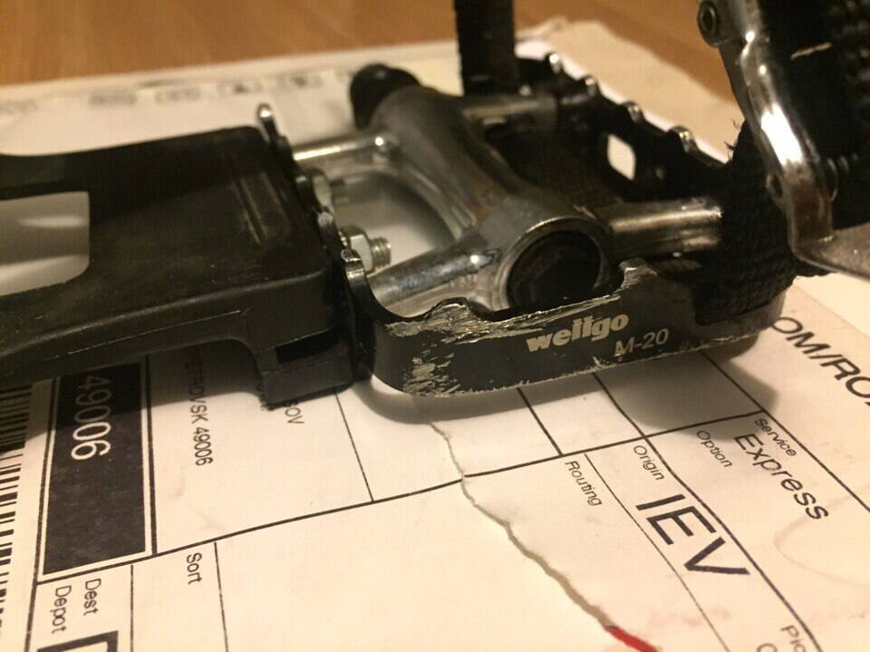 Продам симпатичные педальки веллго м-20, меньше 1000 км в них накрутил,тех состояние идеал,косметически по фото.Алюминиевый корпус рамка стальная,ось хромоль,вес пары 303 грамма.В догон отдам туклипсы качественные,шоб скидить и педеалировать аки стриткинг. Цена 250 грн.