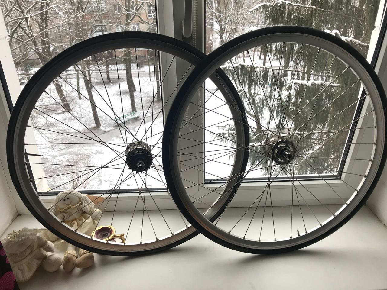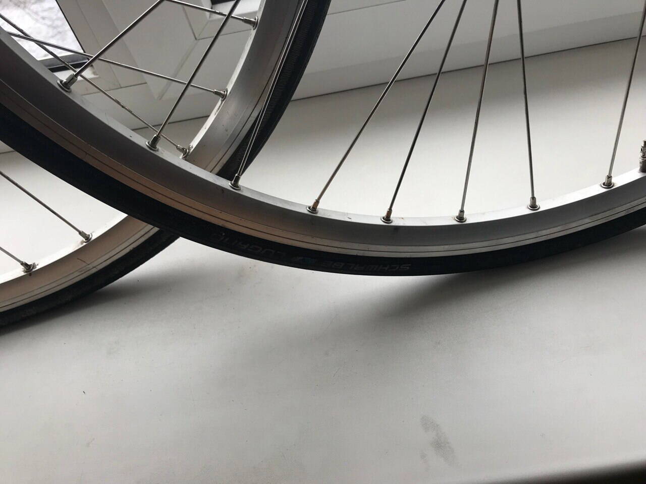 резина есть только на переднем колесе - камера с латками,но еще держит,резина швальбе лугано убитая ,но тоже еще держит.