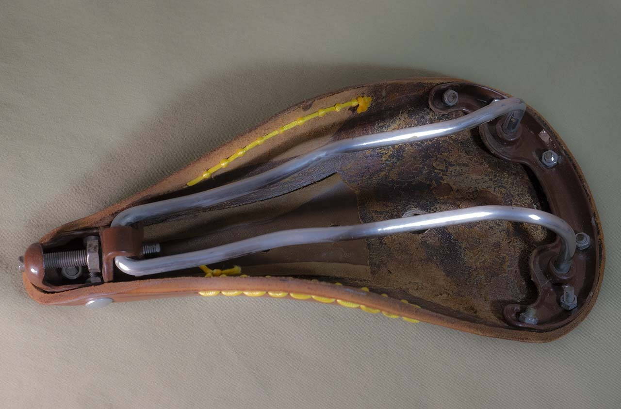 Снизу подклеивал кожаную накладку, но потом часть ее удалил, потому что седло стало слишком жестким и не "играло". Мой вес около 80 кг. Подойдет для красивого фикса, или элитного хромолевого туринга. Цена 50$ (в гривне по курсу). Без торга.