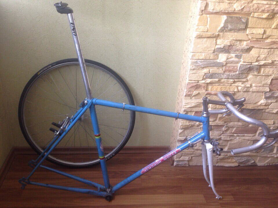 Продам велосипед чемпион-шоссе, в комплексе рама, вилка, рулевая, каретка на пром подшипниках, манетки, подсидел уно, седло, вынос, руль, тормозные ручки, переднее колесо, и заднее, трещетка на колесо и цепь, тормоза перед и зад и подсидельный зажим. Из нюансов: варилась рама возле каретки, откатал сезон и все нормально, также на вилке удлиняли шток. За всеми вопросами пишите в лс.
