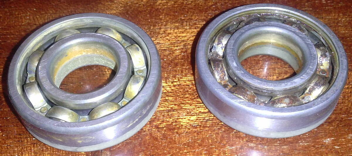 Разобрал заднюю втулку (DS042SB) после ~1300км пробега. Внутри все чисто, ни грязи ни ржавчины нет, но подшипники в барабане вообще не крутятся, пальцем их провернуть не получалось. Снял крышечку с верхнего - внутри какая-то черная фигня вместо смазки (смазка с грязью скорее всего, т.к. подшипник смотрит наружу). Выбил оба подшипника. Второй, который был в глубине барабана (ближе к собачкам), был вообще без смазки, а кольцо с шариками все ржавое. Залил WD40, верхний подшипник удалось разработать, а нижний, "ржавый" - ни в какую. Два других подшипника, не в барабане, крутятся идеально и смазкой нормально забиты.