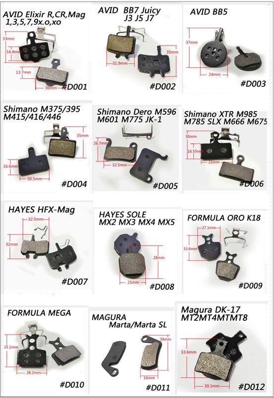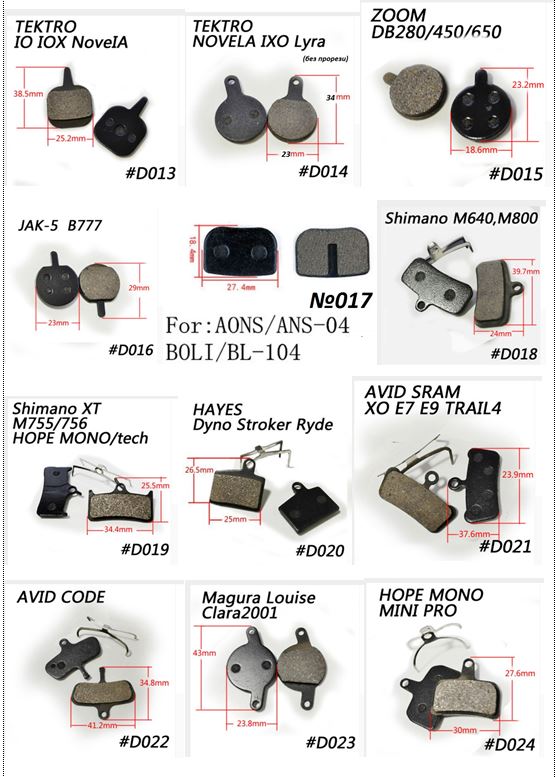 Велосипедные колодки дисковые 30 видов