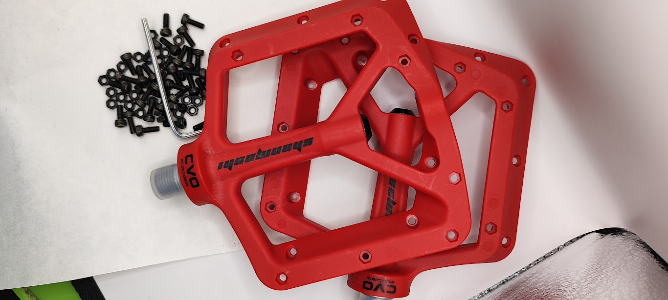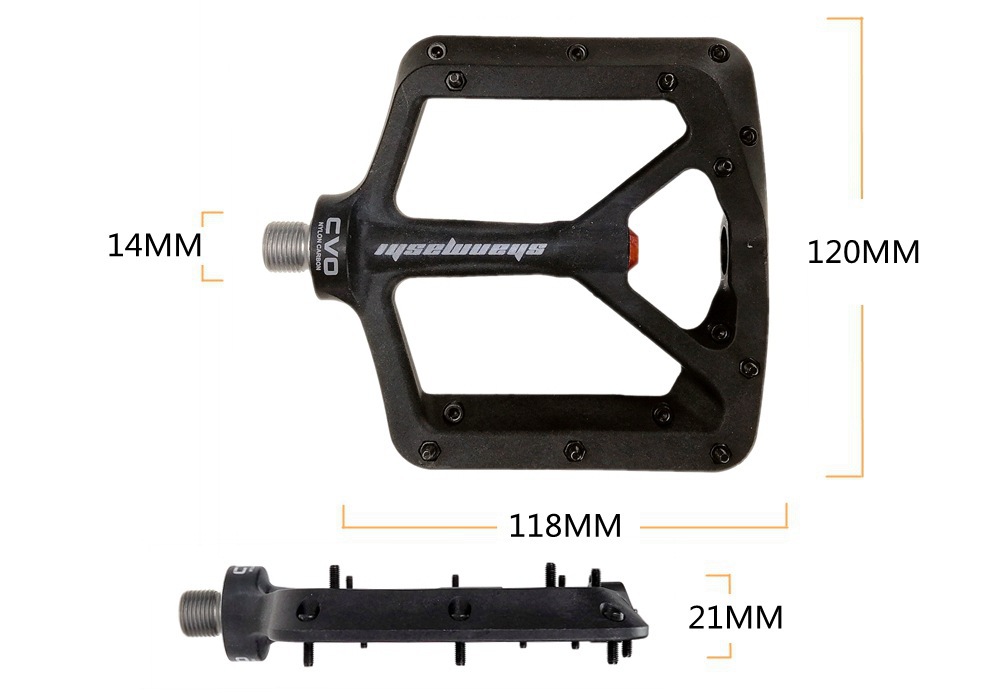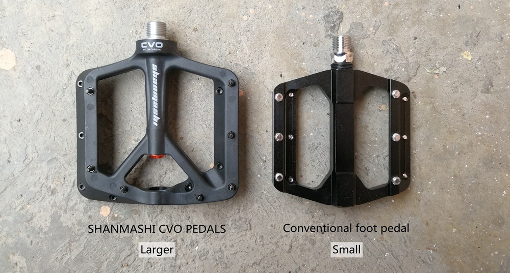 Великі нейлонові педалі.одні з найбільших педалей на двох пром підшипниках один з яких великого розміру як на втулках для надійності,щоб зберегти педаль плоскою його винесено за межі платформи .