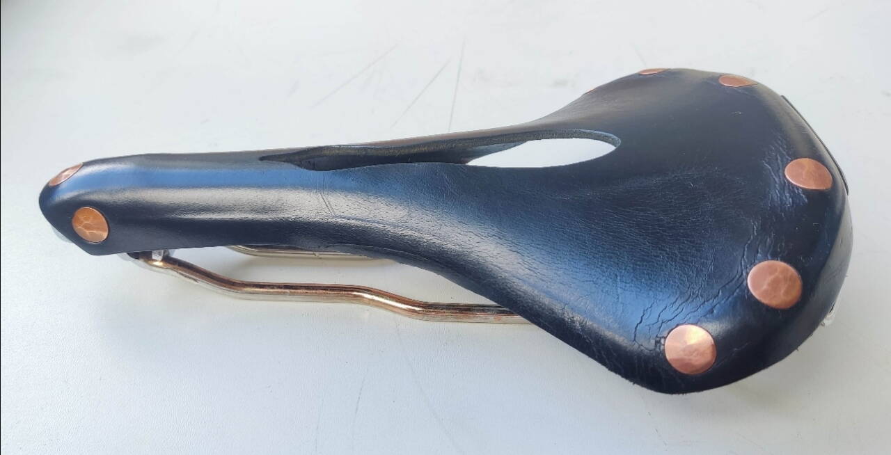 Седло топове Brooks B17 Champion Special (black) з мідними закльопками. Кастомна модель(підрізка юбок та підгин з низу як у Brooks B15 Swallow. Отвір як у Imperial.) Седло в хорошому технічному і візуальному стані. Рейки рівні. Шкіра без дефектів. Болт натяжки шкіри викручений на 4мм. Ресурс великий. Седло відразу супер зручне! Хто не катав на брукс треба пару годин, щоб звикнути до ефекту "гамака". Після їзди на цій сідушці на інших не зможете кататись. Підійде тим хто любить продуктивність і зручність,або не може підібрати зручну сідушку.