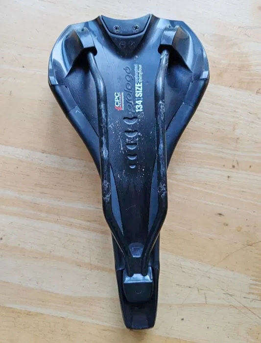 Сідло Prologo Scratch 2 cpc карбонове. Дороге брендове сідло. Вага 219 грм. Ширина 134мм. Підійде тому кому подобаються середньої жорсткості сідушки з набивкою. Б/у, присутні подряпини, сколи лаку на рейлах. Рейли цілі, без тріщин. Інша косметика на фото.