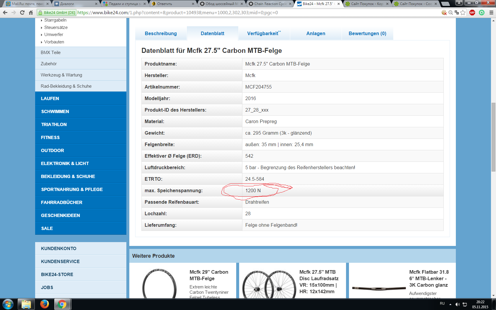 Обод, втулка, количество спиц ? Тяжело указать абсолютно правильное натяжение спиц.Натяжение спиц на заднем колесе со стороны драйвера примерно равняется 100кг, а с противоположной 80 кг. Для переднего колеса оно составляет порядка 140 кг. Наиболее важным является не точная величина, а равномерность нятажения каждой спицы.