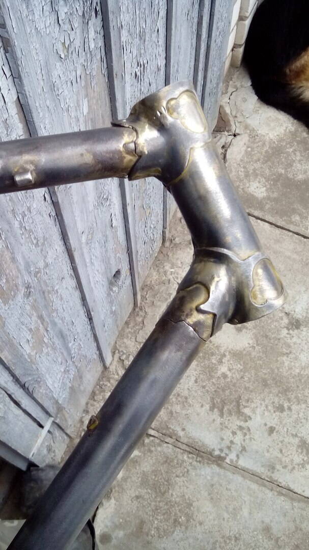 На стартоне катался человек весом 150кг. на фото рама во время реставрации. Но вина наверное на алкаше который паял раму, там верхняя труба совсем без припоя. Вероятно при пайке ее еще и перегрели, на месте перелома было что то похожее на побежалость.