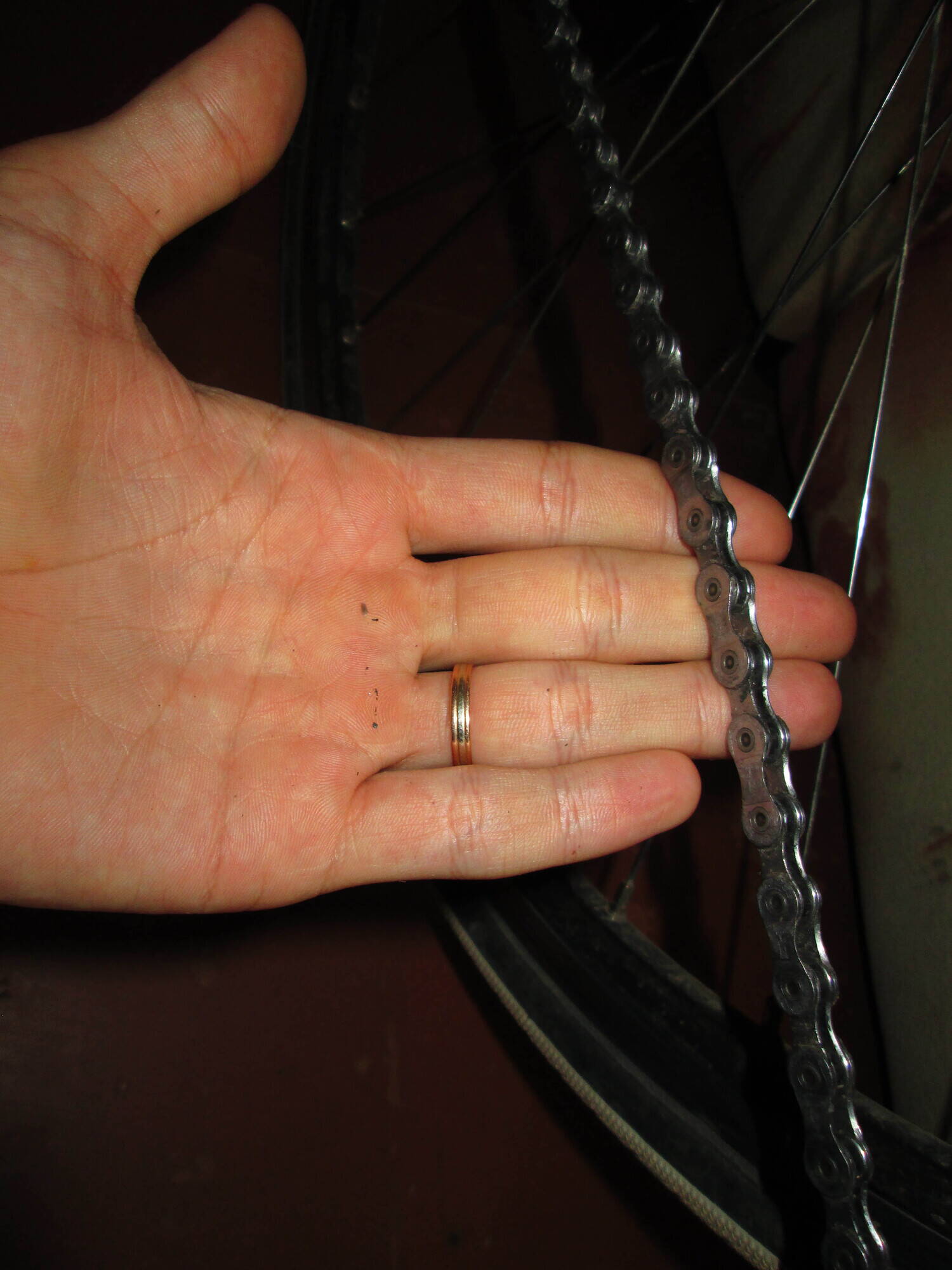 На фотографиях состояние моей кассеты и цепи как раз на рекордных 820 км пробега. Небольшие крупицы парафина, которые легко стряхиваются с руки. Цепь - самая чистая деталь моего велосипеда)