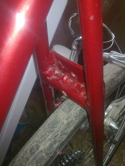 Ещё некоторые важные моментыПри работе важно помнить, какие части рамы как сильно нагружены. Наиболее нагружены концы нижней наклонной трубы - поэтому нужно особенно тщательно следить за качеством сварного шва (на дорожных рамах), маркой припоя, температурным режимом и т.д. как при ремонте трубы, так и при напайке или наварке бонок . Лучше вообще избегать паяльных, и тем более, сварочных работ в этих местах без нужды.