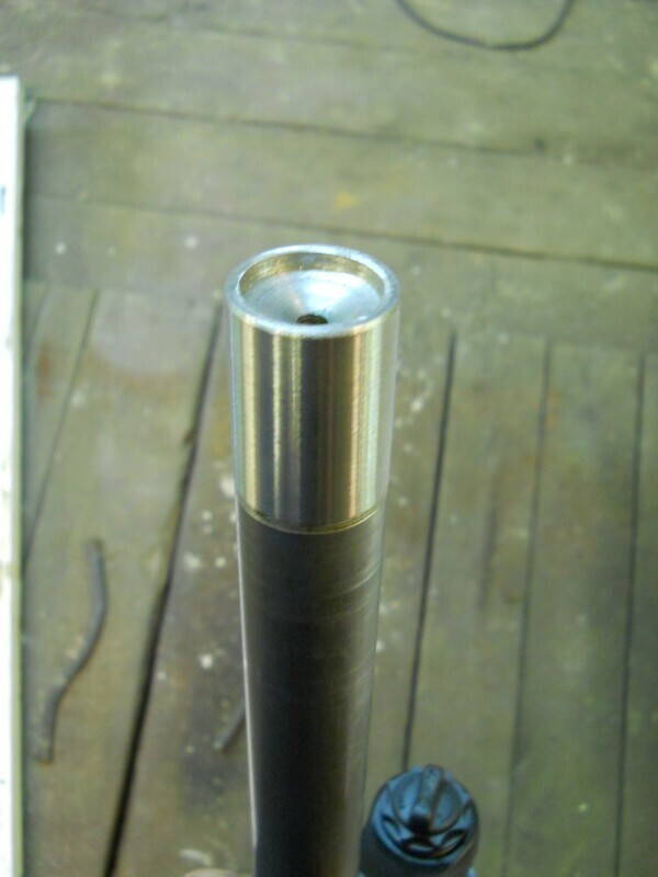 Второй - изготовление удлинителя по индивидуальному заказу у токаря. Можно было сделать такой же как ВВВ, только цельный без съемных колец. Такие готовые продаются на иностранных аукционах, но цена их сравнима с BBB. Можно сделать без клинышка и зафиксировать в трубе или клеем, или с помощью правильно подобранного внутреннего диаметра и жидкого азота. Первым нашёлся знакомый, который имеет доступ к азоту и токарному станку, так что азот победил и остальные варианты я не прорабатывал.