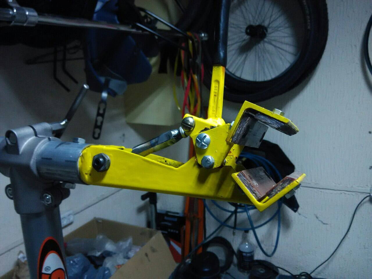 http://static.bikehub.co.za/forum/uploa ... 215325.jpgНесколько поразмыслив, все же получилось. За основу была взята труба 40х40, из которой вырезан П-образный профиль, к нему приварена губка из уголка 35х35 и дальше по схеме.