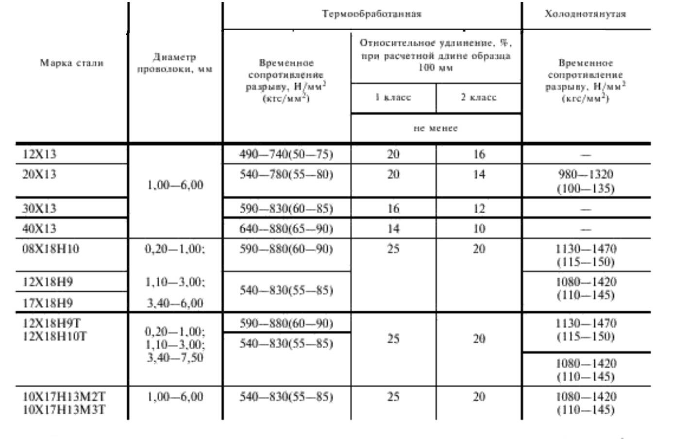 Видите, нижние в таблице марки тянутся на 25%, а 40Х13 чуть больше 10%.