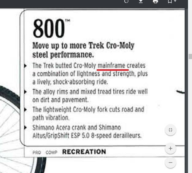 Trek 800 2000 року, батований хромоль, рекомендована ціна $300.