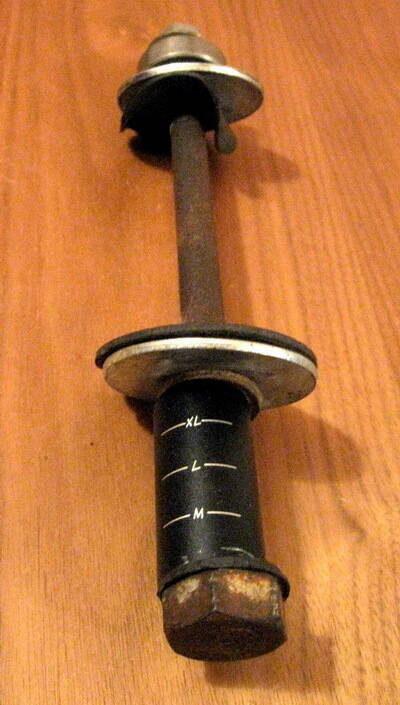 То, что обнаружилось у меня дома, так это - длинный болт (около 20 см), 2 шайбы (диаметром 50 мм - идеально подошло по диаметру чашек и рулевого стакана..), гайка, и пара резиновых прокладок, которые можно и самому вырезать (размер, как у шайб)... Ах да, ещё нашёл подшипник (32 мм диаметр), который тоже неожиданно и очень кстати подошёл, между подшипником и гайкой также вставил небольшую шайбочку (20 мм диаметр)..