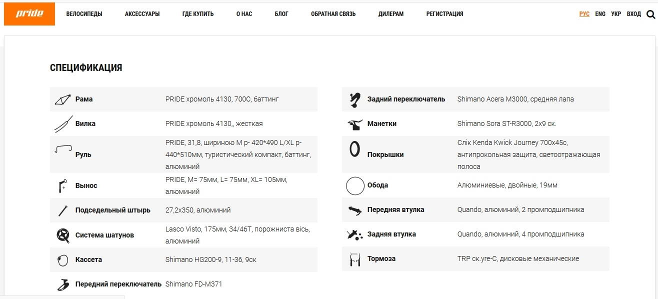 А как это назвать? этот опять мелочный косяк. Я вбиваю в гугл прайд. ищу офиц сайт, ладно наверно у меня операционка на англ и меня автоматом перенаправляет на англ версию (мне всеравно), ищу велосипед, характеристики пусто, убеждаюсь что я правильно ищу отыскав свой вел (Pride rocket) - Specification на месте. Ну .. и что мне думать? И один прайдолюб начинает выхоидить из себя, мол его не понимают.