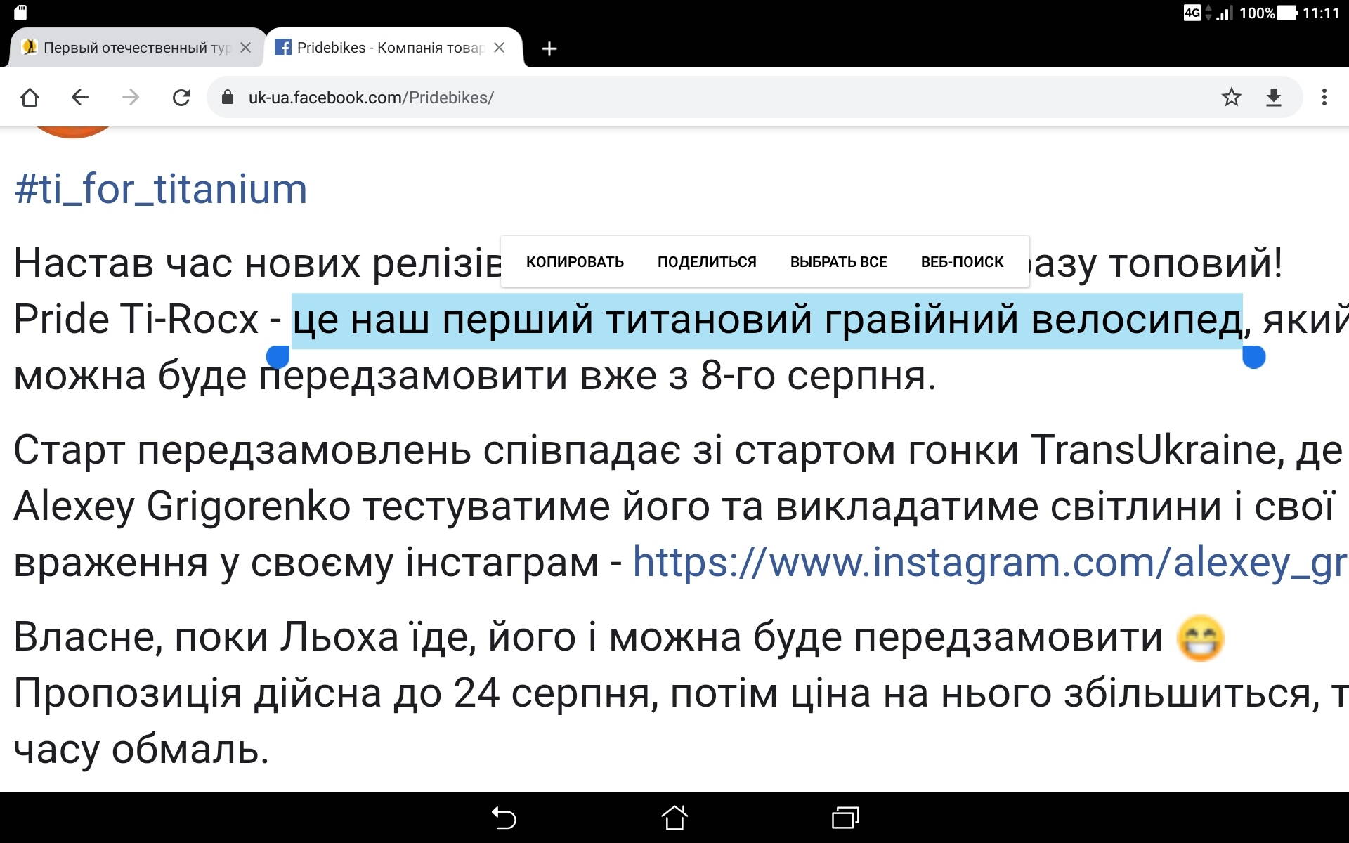 Далі на титановий PRIDE ставити алюмінієвий багажник - о ні!