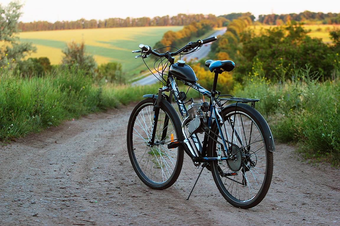 Общий вес аппарата 27кг, ибо сам вел тяжелый, с 28 колесами, железной рамой, щитками, тяжелой передней вилкой. Заднее колесо испытывает значительные нагрузки, покрышка за время эксплуатации стала практически лысой. Проехался вокруг города с целью выяснить расход топлива. В итоге за 115км было истрачено ровно 2 литра.
