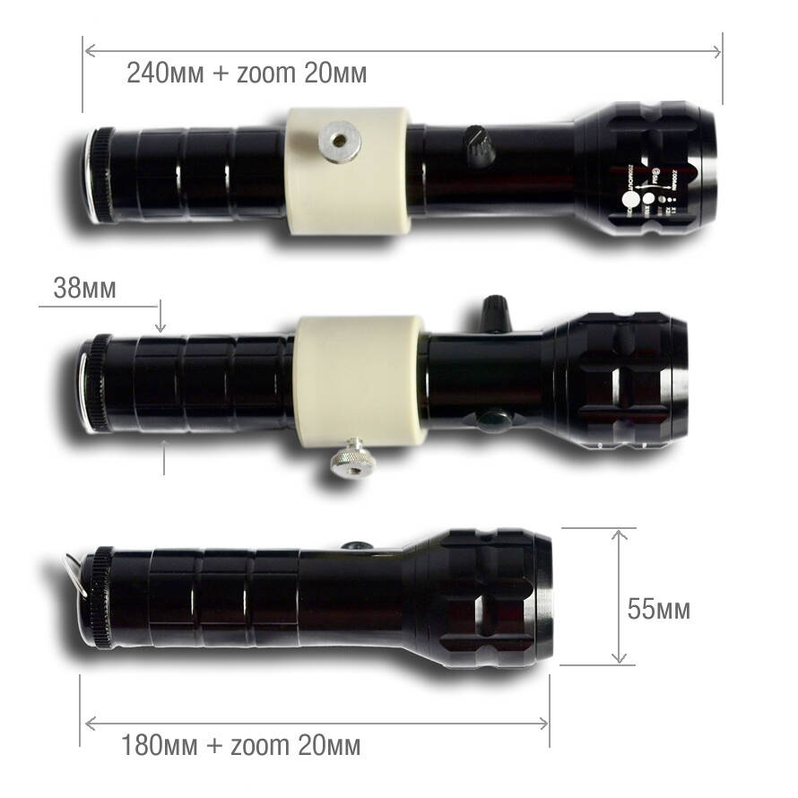 Непонятно как можно использовать для фотографии зум-линзовый фонарь, т.к. самый широкий угол фонаря составляет градусов 30, что соответствует примерно ЭФР 80 мм у объектива (начало телеобъективов). Зуммированием угол сужается до нескольких градусов (ЭФР > 400)