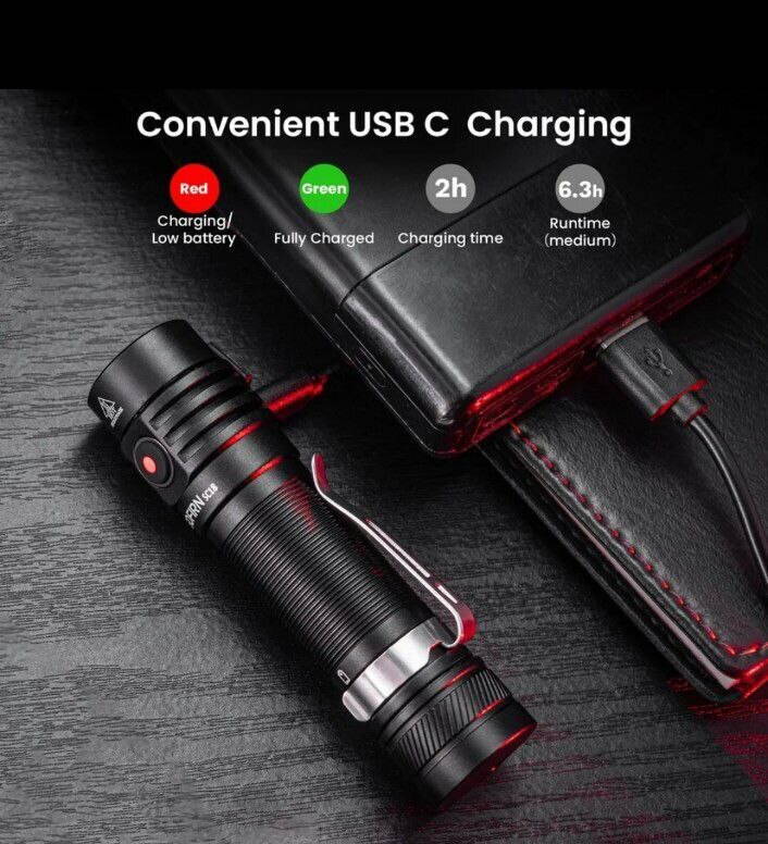 Данная модель фонарика совмещает в себе компактный размер и впечатляющую яркость, как для таких габаритов. Имеет встроенный USB C разъем для зарядки. Богатый функционал делает использование комфортным и удобным.