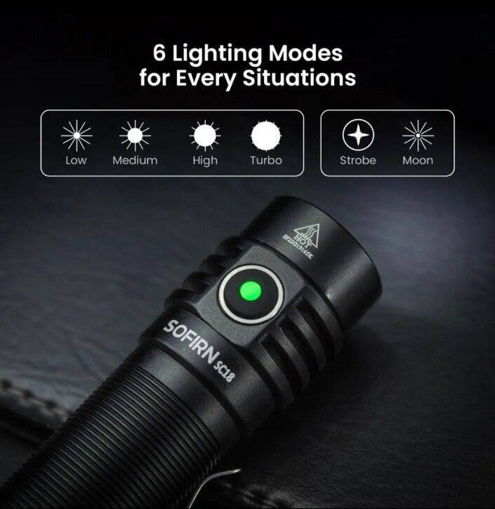 Фонарик Sofirn sc18 яркость 1800 люмен + аккумулятор в комплекте