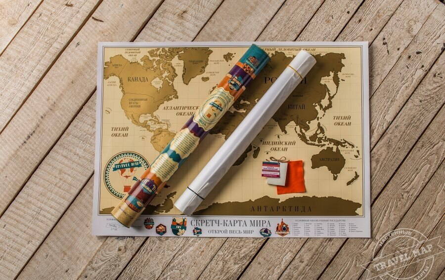 Карта Мира скретч купить в Днепропетровске, а также можно доставить по всей Украине. Уникальная и редкая карта для настоящих любителей ездить и смотреть весь мир. После того, как Вы приехали с какой либо страны, берём монетку и аккуратно стираем верхний слой этой карты. После чего страна с которой Вы приехали, станет другим цветом. И так стираем пока не объездим весь мир. Карта идёт в тубусе, он тоже очень удобный и практичный. Скретч карта мира-хороший подарок для тур Агенств. На Карте обозначены все страны на Русском языке.
