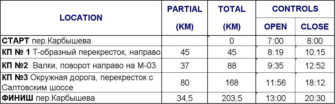 Регистрация на месте старта: 06:20-06:50.