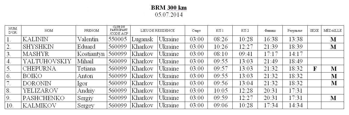 Заголовок сообщения: Re: Харьков, 05.07.2014, бревет 300 км