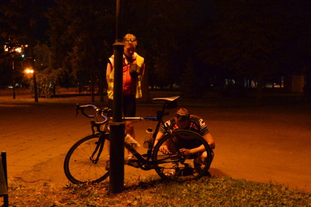 Это я накаркал или сглазил: сам же и заблудился между Чупаховкой и Зеньковом.Ещё раньше началось настоящее кросс-кантри! (да не вам рассказыывать). Скорость упала до 10-15, пока то да сё, искал воду, опустилась темная украинская ночь!!! Люди зашли во дворы, отпустили собак і пішли вечеряти! Куды податься бедному рандоннеру?! Пришлось останавливать проезжающие машины, большинство не хотели. А кто остановился советовал за дамбой свернуть направо, подняться по стежке, объехать камыш, а там уже будет дорога. А если не спешить, то едьте прямо этой дорогой, а там в чистом поле будет поворот на 135 град і це дорога на Зеньков! Там ще рядом есть село Мандрыковка (Латраповка?)! Еще две девочки вышли з двору на лавочке покурить, добрые души - и они подсказали! А когда уже въехал в большое село - красота! Возле давно закрытого магазина хлопці і дівчата сидять пьють пиво, говорят: батя все просто, никуда не сворачивайте с этой дороги, все прямо и через 23 км будете в Зенькове! Это уже где-то около полуночи... На фоне садящихся аккумуляторов...О еде не думалось...